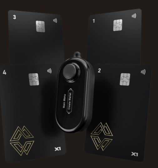 X1 Vault– This is the main device for storing crypto assets and signing transactions. It has an OLED display and a joystick, for ease of navigation.